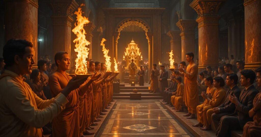 Caption: A blend of devotion, symmetry, and traditional craftsmanship.
